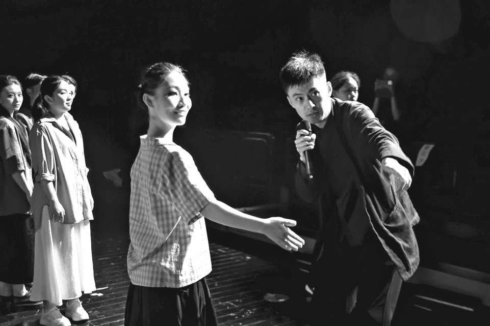 朱少鹏保护孩子们的心血,同时要引导他们把单纯的热爱变作能与观众见面的“成品”——没有站进光里,重来;台词听不清,重来;走位不准确,重来;锣鼓没打好,重来;逻辑终于理顺了,再来一次加深记忆。十几分钟下来,4位同时饰演衙役与村民的男生不停地蹲下站起,很快冒了汗,4位唱歌的女生嗓音累得开始走调,但没人松懈、没人抱怨。